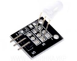 “KY-016” – 3-х кольоровий світлодіодний модуль містить RGB світлодіод з 3-ма входами, що дозволяє отримувати необхідний колір випромінювання за допомогою подачі потрібної напруги на входи. Світлодіод має загальний катод. Обмежувальні резистори встановлені на платі. Характеристики: номінальний струм: 20 мА максимальний імпульсний струм: 50 мА пряма номінальна напруга (червона): 2 В пряма номінальна напруга (зелений): 3,4…