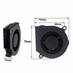 Равлик 12в 0.36A відцентровий вентилятор охолодження, пластик. Напруга: DC12V Струм: 0.25A Розміри: 75 х 75 х 30 мм (80 мм між отворами) Швидкість вентилятора: 3000±10% Вентилятор Шум: 38dB (a) Потік повітря: 11.3CFM