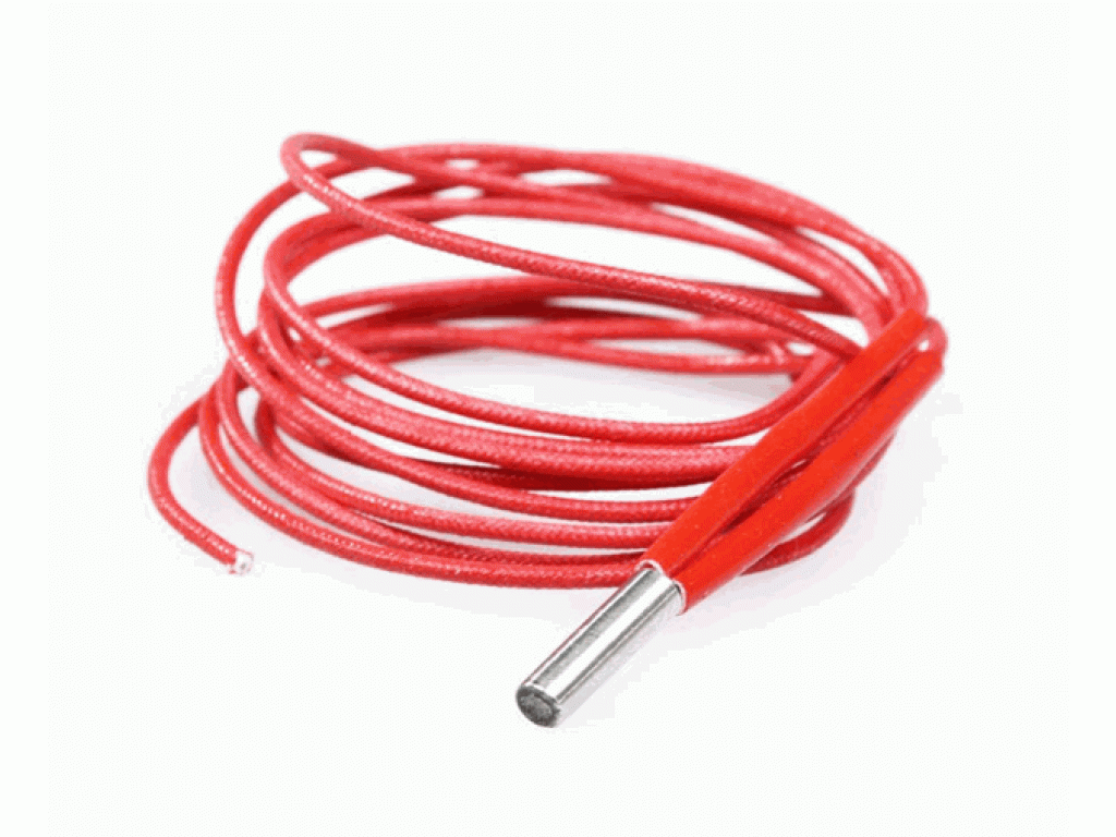 Керамічний нагрівальний елемент, в корпусі з нержавіючої сталі, для установки в хотенд (нагрівальний блок) екструдера 3D-принтера. На відміну від резистора, він має велику потужність і, відповідно, швидкість нагрівання. Нагрівальний елемент вже з’єднаний з проводом, біля основи кожен контакт має фторопластову ізоляцію, а сама сполука захищена термостійким кембриком.