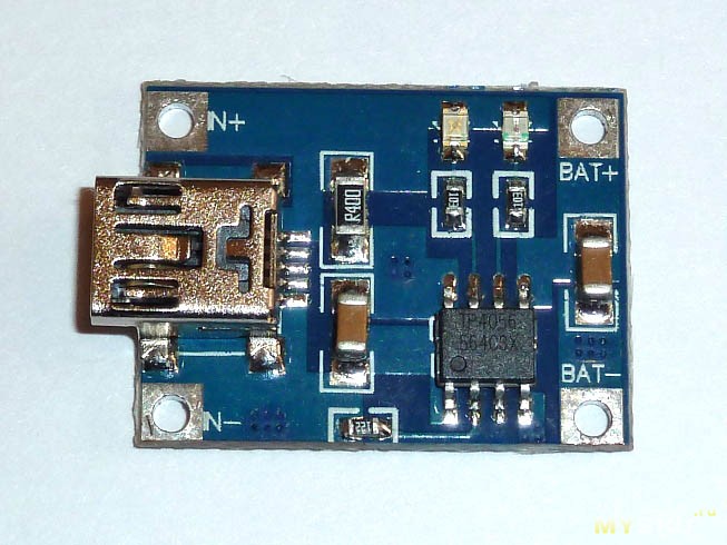 Модуль позволяет заряжать Li-Ion аккумуляторы (как защищенные, так и незащищенные) от порта USB с помощью кабеля microUSB.