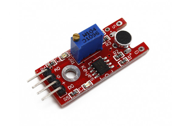 Микрофонный датчик звука Keyes KY-038 может определять уровень громкости вокруг него. Он может применяться, например, для включения света по хлопку.