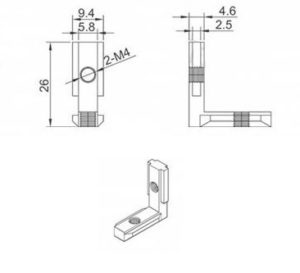 Внутренний угловой соединитель (угловой пазовый сухарь) предназначен для соединения двух профилей под углом 90 градусов.